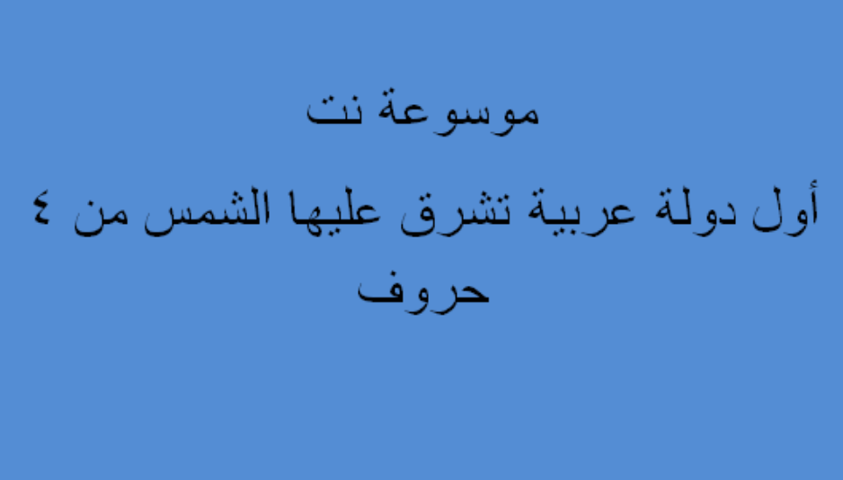أول دولة عربية تشرق عليها الشمس من 4 حروف، إشراق الشمس يعتبر من الظواهر المهمة المؤثرة في العالم والذي ينظر لها الإنسان بكثرة بسبب أهمية أن يقوم الفرد بهذه الأمر المميز والجميلة التي يعتبر جزء من التاريخ الذي ينظر له الإنسان بكثرة بسبب أهميته، حيث أن هذه المعلومات التاريخية لها تأثير على الفرد بسبب أهمية أن يعرف الإنسان بهذا العلوم المهمة والتي تعتبر جزء من التاريخ الذي ينظر لهذا الأمر بشكل كامل بسبب أهمية أن يكون هناك علوم لدى الفرد أن أول دولة عربية للإشراق.