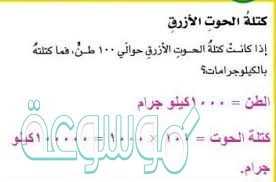 إذا كانت كتلة الحوت الأزرق حوالي 100 طن فما كتلته بالكيلوجرامات
