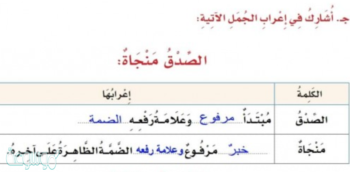 أشارك بإعراب الجمل الاتية الصدق منجاة لغتي
