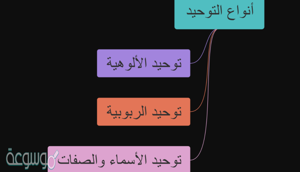 التوحيد هي إفراد الله تعالى في العبادة والعمل والأسماء والصفات فالله هو اعلى منزلة ولا يمكن أن تجعل أحداً أعلى منه بأي صفة، فهو الكامل الذي لا يخلو من أي نقص والتوحيد شيء هام جداً لدى المسلم للحصول على السكينة والطمأنينة في الحياة وينقسم التوحيد لثلاثة أنواع وهم توحيد الربوبية وهي إفراد الله تعالى بالخلق والعرش والملك فلا يوجد خالق غيره قوله تعالى في كتابه الكريم ” ولئن سألتهم من خلق السماوات والأرض وسخر الشمس والقمر ليقولن الله”.