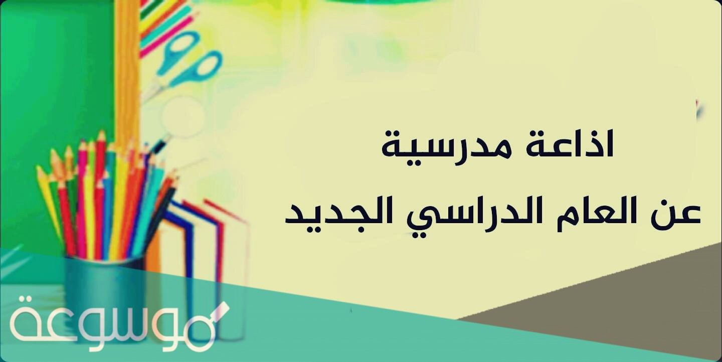 اذاعة مدرسية عن بداية العام الدراسي الجديد 1443/ 2022، الاذاعة هي أجمل ما قد يبدأ بها الطالب العام الدراسي الجديد الذي يحمل معه الهمة والأمل الجديد بعام دراسي جديد مليء بالجد والاجتهاد، في هذا المقال الذي نكتبه مع بداية العام الدراسي الجديد عودة الطلاب لمدارسهم سنكتب لكم أهم الأفكار لاذاعة مدرسية هادفة تعمل على تحفيز الطلاب سيقوم موقع موسوعة نت بتقديم اذاعة مدرسية عن بداية العام الدراسي الجديد 1443/ 2022.