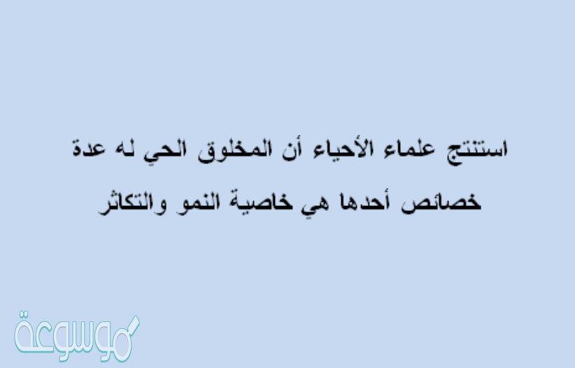استنتج علماء الأحياء أن المخلوق الحي له عدة خصائص ومنها خاصية النمو والتكاثر