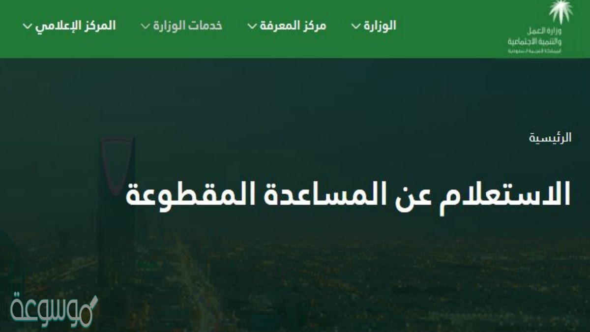 هُناك العديد من الخدمات التكنولوجيّة التي عملت وزارة التنميّة الاجتماعيّة في المملكة من تقديمها هدفت هذه الوصول إلى المواطنين في كافة أماكن تواجدهم كذلك امكانيّة الاستعلام عن المقطوعة والتسجيل فيها من خلال الدخول على الموقع الإلكتروني الخاص بالوزارة، حددت هذه سلسلة من الشروط الأساسيّة التي يجب العمل اتباعها خصوصًا أنها توفر المعاشات الشهريّة للأسرة ومُساندتهم في ظل الظروف المعيشيّة التي تحياها الأسرة بشكل عام، وقد تمكنت الوزارة من إطلاق الخدمة بشكل الكتروني وإمكانيّة الدخول إليها والتسجيل وكذلك الاستعلام عن الخدمة التي يحتاجها الشخص بشكل عام، ويُمكنكم الدخول على رابط الاستعلام عن المساعده المقطوعه برقم الطلب من خلال الضغط هُنا.