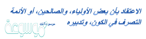 الاعتقاد بأن بعض الأولياء، والصالحين، أو الأئمة التصرف في الكون، وتدبيره، مع وجود ديانات كثيرة ومحرفة، حيث نجد أن كل أحد يعمل على تأليف كتاب وويضع فيه بعض الجمل والكلمات التي يخرجها للعالم من خلال ما مر به، يحاولون أن يغيروا الأفكار الذهنية للناس من خلال تلك المعتقدات الغير مفهومة والمركبة تركيبا بشيرا، أي أنها من صنع البشر وليس الخالق، وهي ما يجعلها ضعيف وغير ثابت، والتي أخذو من خلالها الدخول لعالم الأعمال الخرافات السحرية والمتصنعة للمحاولة على إقناع الناس بطريقة أو بأخرى بهذه الأفكار التي تكون متدنية.