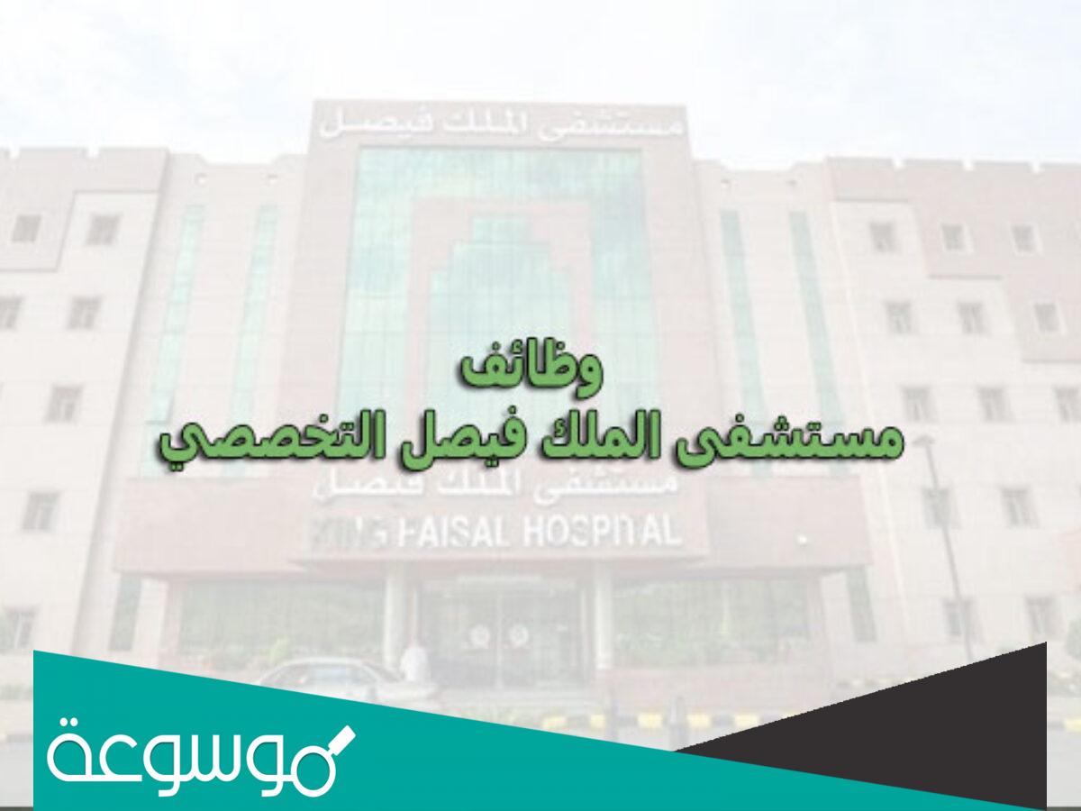 تعلن مستشفى الملك فيصل التخصصي كل عام عن وظائف شاغرة في المستشفى وفروعها، حيث يتم قبول الطلبات وفقا لبعض الشروط التي تفرضها المستشفى بالإضافة إلى أنه يتم تقديم طلبات التوظيف إلكترونيا من خلال الموقع الرسمي التابع للمستشفى في المملكة العربية السعودية.