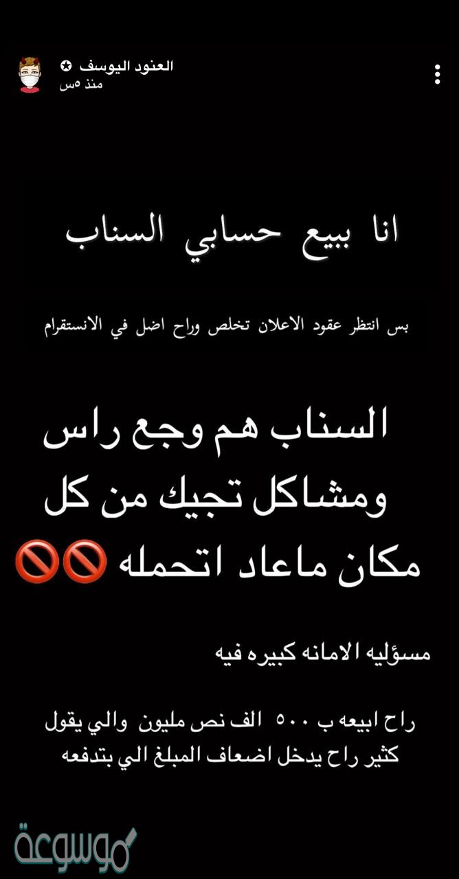 تصدر هاشتاق العنود اليوسف تبيع سنابها اليوم الأثنين 16/11/2020م، عبر مواقع التواصل الاجتماعي وذلك بعد أن قامت خبيرة التجميل العنود يوسف ببيع حسابها الرسمي على سناب شات، حيث قال بعض النشطاء في تغريدات لهم عبر موقع تويتر بأن سناب العنود يوسف سوف يتم بيعه مقابل 500 ألف ريال سعودي أي نصف مليون ريال سعودي، وذلك بسبب المشاكل التي قد حصلت في الآونة الأخيرة لها بسبب حسابها على سناب شات، وقال العنود يوسف: ” نا ببيع حسابي السناب بس أنتظر عقود الإعلان تخلص وراح اضل في الانستقرام. السناب هم وجع راس ومشاكل تأتيك من كل مكان ما عاد أتحمله”. وفقا لما قالته”.