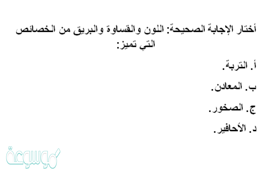 اختار الإجابة اللون والقساوة والبريق من الخصائص التي تميز