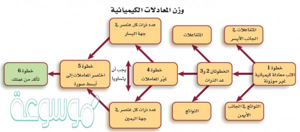 ان عملية وزن المعادلة الكيميائية تتم في عدة خطوات متسلسلة، وهذه الخطوات هي كالآتي: