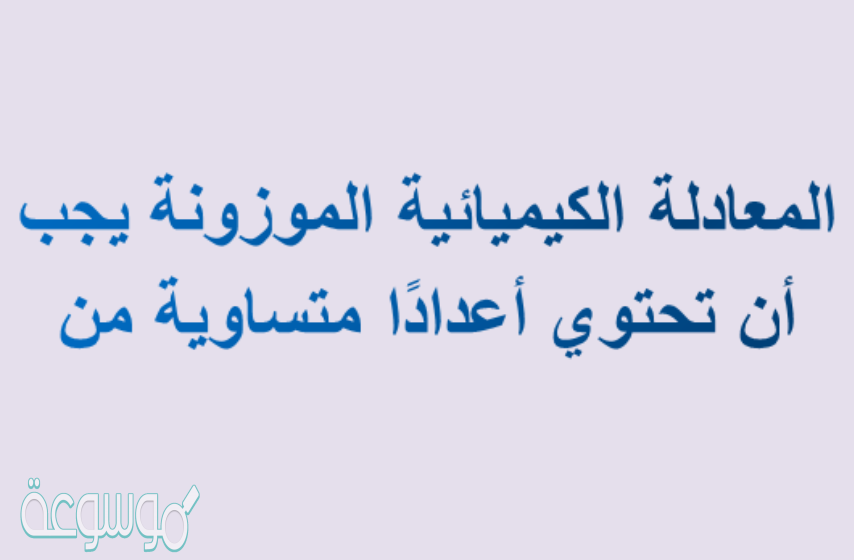 المعادلة الكيميائية الموزونة يجب أن تحتوي أعداداً متساوية