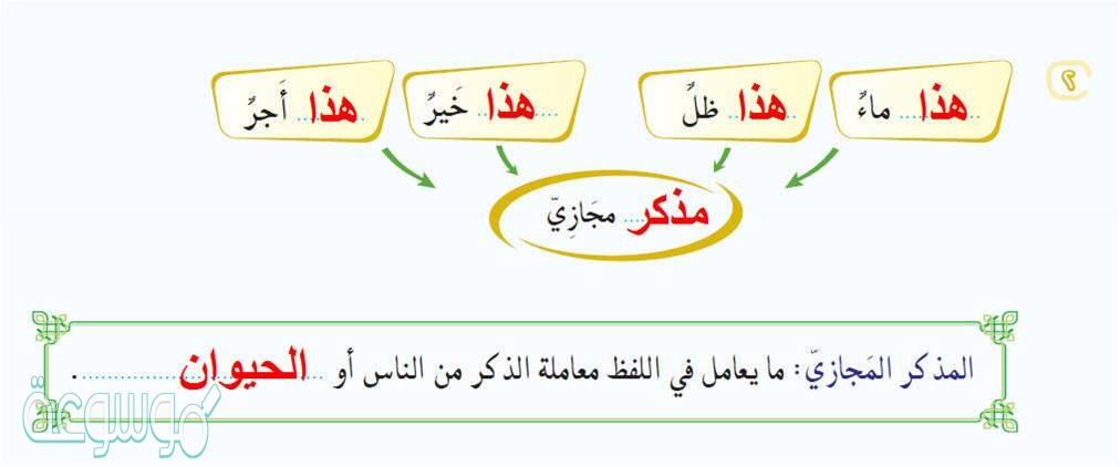 • المؤنث المجازي، وهو الحديث عن الكلمات الغير حقيقية وهي التي لها دلالة ومعنى التي تكون غير عاقل كالجمادات.