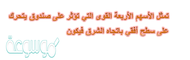 تمثل الأسهم الأربعة القوى التي تؤثر على صندوق يتحرك على سطح أفقي باتجاه الشرق فيكون، التأثيرات التي توجد على الأشكال المختلفة والتي تتمثل في البيئة الطبعية للأجسام الموجودة وتعبر من خلالها عن طريقة حياتها المتراصة بها، وهذا يعتبر أمر فيزيائي بحت يكون من خلاله طبيعة الأجسام الكونية المتحركة أو الثابتة، والفيزياء هي حالة تقدم فيزيائيا من خلال الحركة الموضع العام، وهي التي تعطي للجسم نسبة خاصة به حيث تتمثل بنسبة تسمى تغير الزخم من حساب الحركة الزمنية.