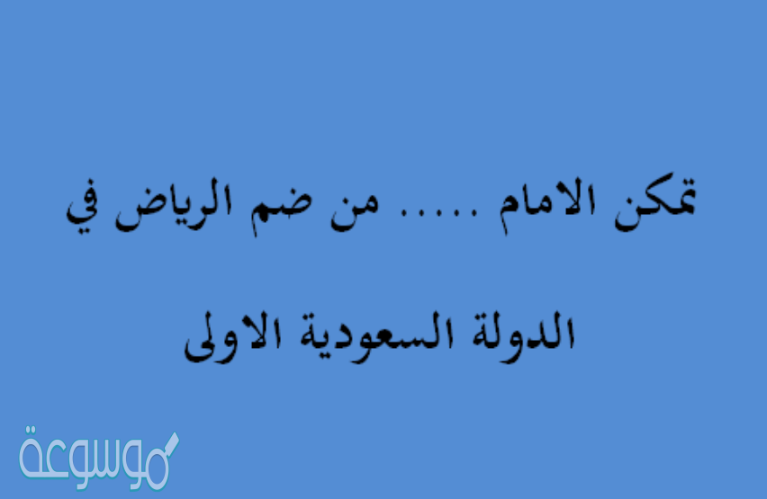تمكن الامام ….. من ضم الرياض في الدولة السعودية الأولى، معرفة تاريخ المملكة العربية السعودية شيء مطلوب من الطلاب أن يفهموه لأهمية في حياة المواطن في معرفة تاريخ وطنه الذي مر بثلاثة مراحلة وهم الدول السعودية الأولى والثانية والثالثة، فالتاريخ جزء من حياة المواطن السعودي الذي يجب أن يفتخر به لما حققوه أبناء الوطن قبل سنين عندما كانت تعاني المملكة من اضطرابات كثيرة وتدخلات أخرى، ومن الأسئلة الدراسية التي يحتاج الطالب لإجابة عنها وهي تمكن الإمام من ضم الرياض في الدولة السعودية الأولى.