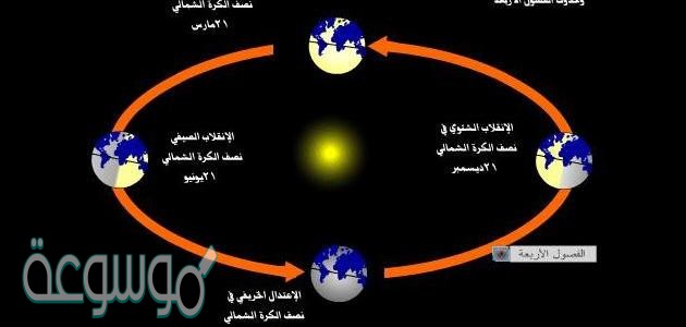 - تنتج الفصول الأربعة بفعل دوران الأرض حول الشمس.