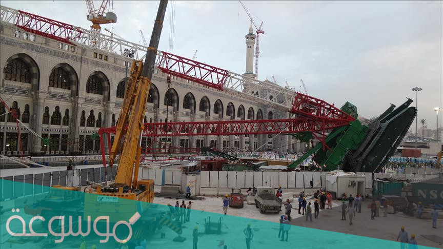 حدثت هذه الواقعة في الحرم المكي وتعتبر من أكبر الحوادث التي حدثت في المملكة السعودية، وحدثت في تمام الساعة الخامسة وعشر دقائق من يوم الجمعة بتاريخ 11 سبتمبر من عام 2015 حين كانت أعمال لتوسعة المسجد الحرام، وحدث خلل فني في الرافعة مما أدى الى وفاة أكثر من 108، وإصابة أكثر من 238 جريح بحسب ما تم الإعلان عنه من الدفاع المدني السعودي، وأشارت المواقع الإعلامية أن سبب سقوطها هو الحالة الجوية المتقبلة حينها، فالجو كان مليء بالعواصف الرملية.