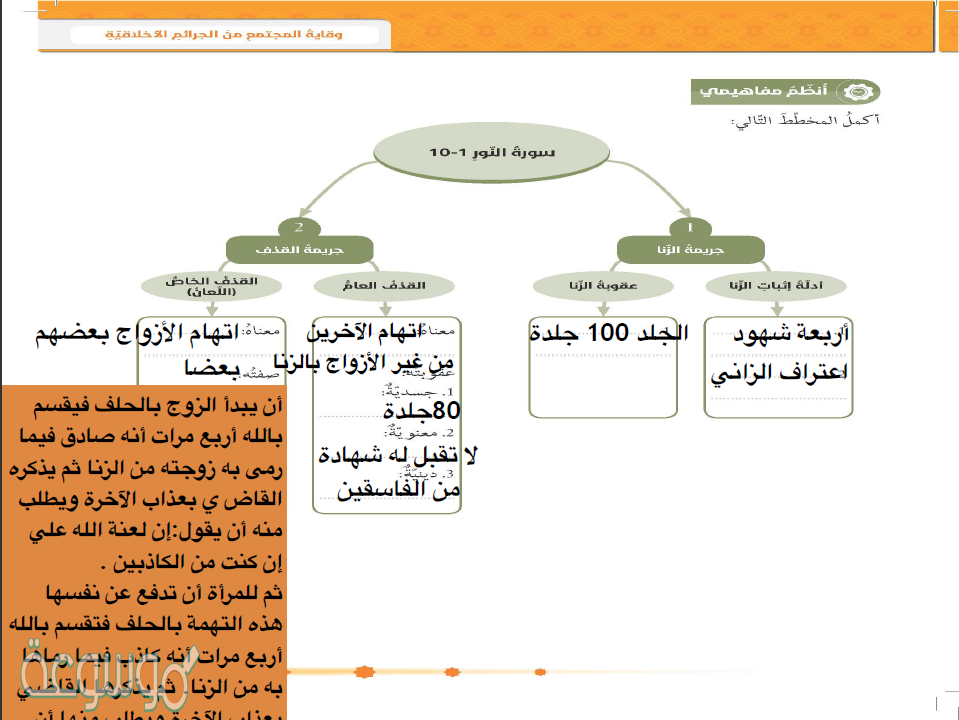 تضمن الدرس العديد من المعلومات الجديدة التي لابد على الطالب الحصول عليها خصوصًا أنها تُطور القدرات العقليّة في أسس الوقاية من الجرائم الأخلاقيّة التي لابد من وقاية المُجتمع وتعزيز الارتباط الكبير فيها، تُعتبر مادة التربيّة الإسلاميّة من الأسس الرائعة التي تحظى بالكثير من الإهتمام المُتواصل فيها ما بين الجمهور بشكل عام، يتضمن الدرس العديد من الأسئلة المُتنوعة التي تُساعد على تقويّة الأفكار الدينيّة والمعلوماتيّة لدى الطالب، و سنوضح لكم حلّ درس وقاية المُجتمتع من الجرائم الإخلاقيّة.