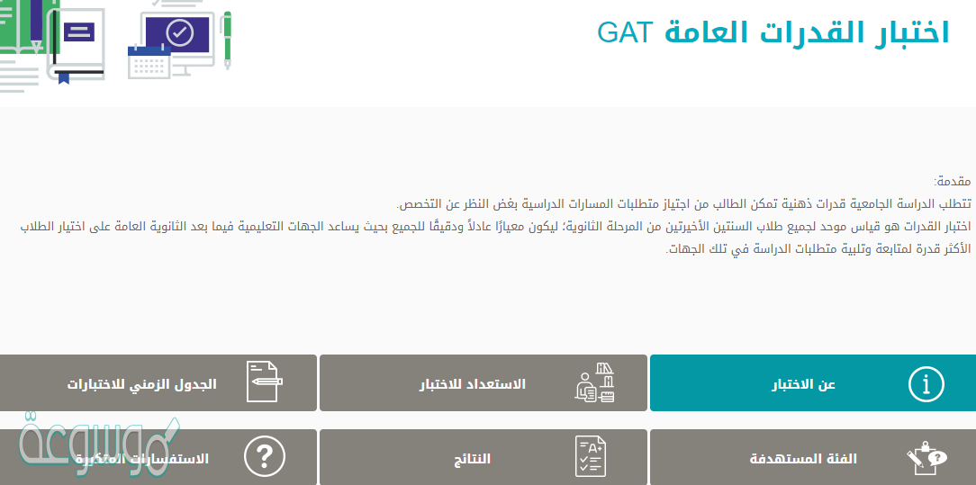 - قم باختيار زر اختبار القدرات العامة GAT.