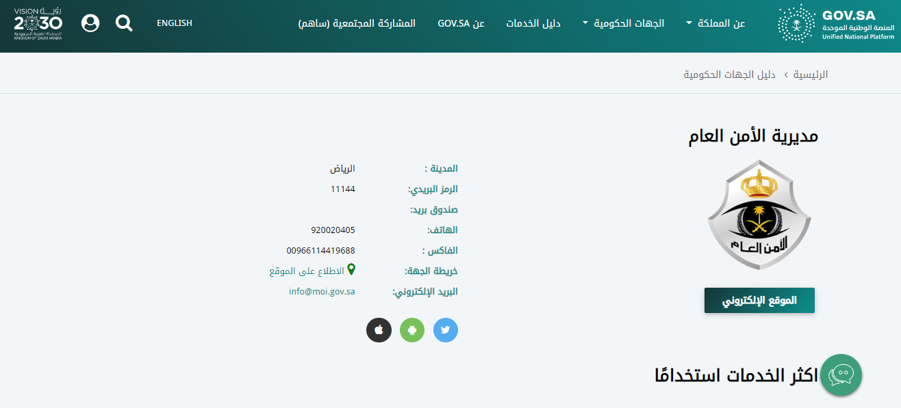 • أن تقوم بالدخول إلى موقع الأمن العام.