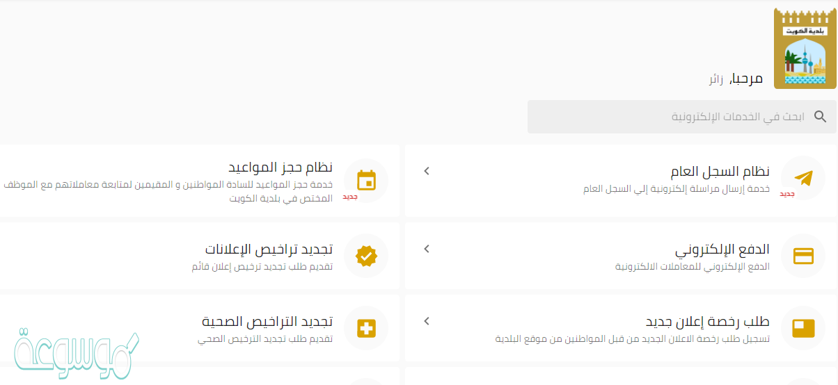 تهتم بلدية الكويت في تقديم الخدمات للمواطنين بشكل إلكتروني بما يضمن له الحصول على فرصة من أجل التسجيل في الخدمات الإلكترونية المتاحة لدى البلدية التي توفر كل الخدمات التي يسعى لها المواطنين للتوصل إلى الخدمات المختلفة التي تقدمها البلدية، لذلك فأن الفرد بحاجة لأن يقوم بالتعامل مع البوابة الإلكترونية التي توفر للمواطنين فرصة من أجل الاستفادة من الخدمات الإلكترونية الكثيرة الموجودة ضمن الخدمات الإلكتروني، للدخول إلى البوابة الإلكترونية بلدية الكويت الخدمات الإلكترونية اضغط هنا.