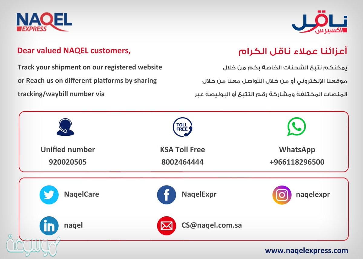 رقم ناقل الموحد ؟ رقم خدمة عملاء ناقل ؟ خدمة العملاء ناقل ؟ رقم ناقل اكسبريس ؟ Naqel Unified Number ؟