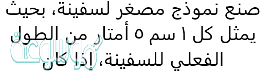 - الجواب الصحيح هو: صنع نموذج مصغر لسفينة، بحيث يمثل كل ١ سم ٥ أمتار من الطول الفعلي للسفينة، إذا كان طول السفينة بالرسم مُساوي لطول سفينة بالحقيقة.
