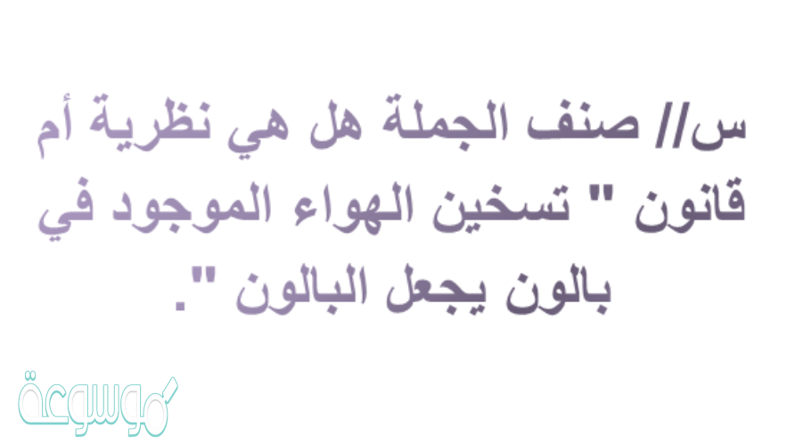• س// صنف الجملة هل هي نظرية أم قانون تسخين الهواء الموجود في بالون يجعل البالون.