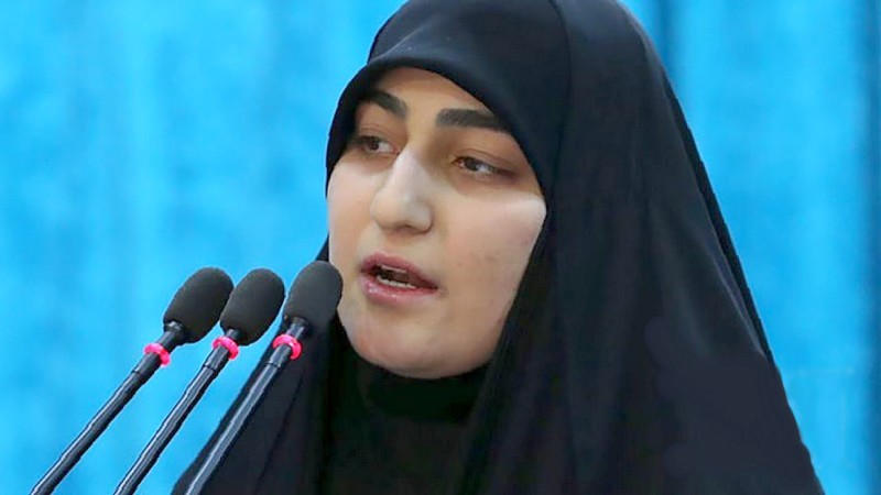 صور زينب قاسم سليماني في صلاة الجمعة حاملة سلاح
