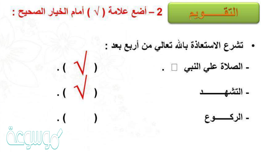 - التشهد. ” صح”