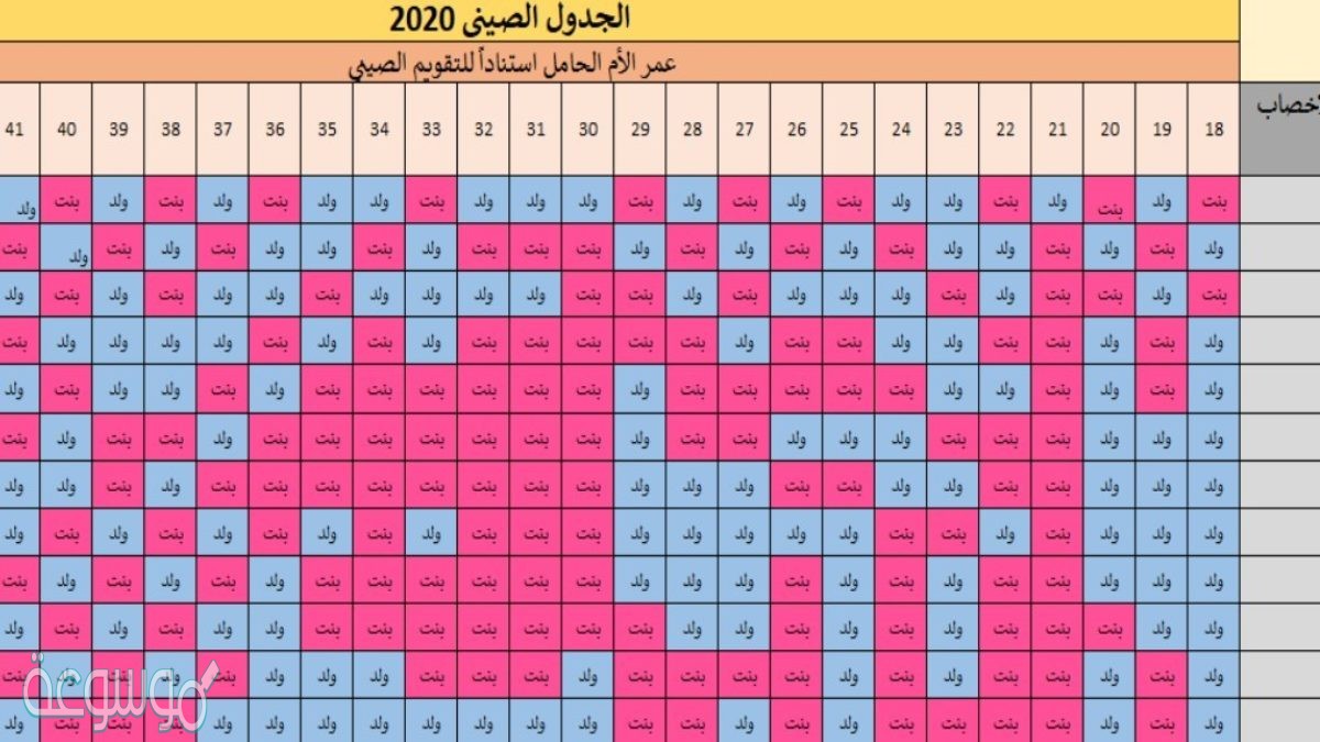 الجدول الصيني لمعرفة نوع الجنين بالميلادي