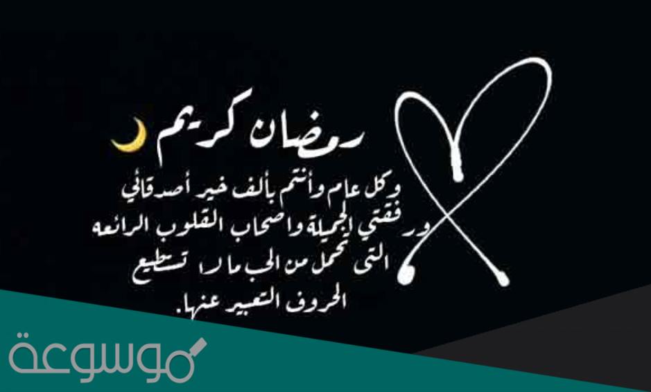 - صديقتي وروحي الْغَالِيَة بَلَغَك اللَّه رَمَضَانَ وَهُوَ راضِي عَنْك كُل عَام وَأَنْت لِلَّه أَقْرَب .