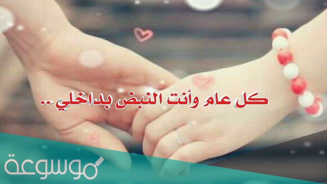- حَبِيبِي “الاسم” زَوْجِي وحبيبي وَكُلّ حَيَاتِي كُلِّ سَنَةٍ وَأَنَا وَأَنْت وعيالنا مَعَ بَعْضِ .