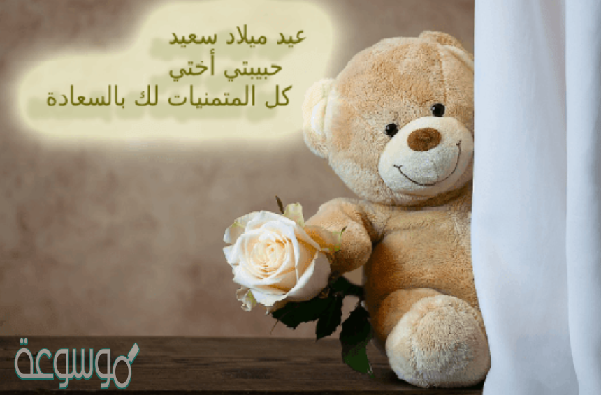 - كُلَّ عَامٍ وَأَنْت أُخْتِي كُلَّ عَامٍ وَالسَّعَادَة مَا تفارقك وَالْحُزْنِ مَا يُعْرَفُ لَك طَرِيق مِيلاَد الشَّخْص الألطف فِي الدُّنْيَا.Every year, and you are my sister, every year, happiness will not leave you, and sadness is what is known to you by the birth of the gentlest person in the world.