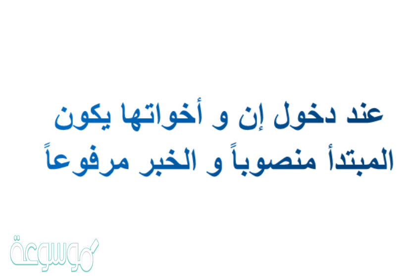 عند دخول إن و أخواتها يكون المبتدأ منصوباً