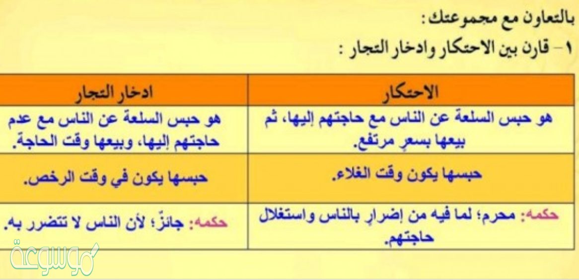 قارن بين الاحتكار وادخار التجار، هُناك العديد من القيم والمعلومات التي يجب على الإنسان تحقيقها في الحياة والتي تُساعد على تطوير الكثير من الأفكار والتعامل الكبير فيها، كذلك الأمر تعمل هذه على توضيح الفقه الإسلامي القويم الذي يُساعد على تقديم المعرفة العامة والأدلة الكبيرة التي حملت التأثير الاساسي والمنفعة العلميّة بشكل عام، تتطلب هذه الدراسة الفكريّة من المنطقيّة الإسلاميّة في التعامل مع جمع هذه الحالات بشكل عام، كذلك تحمل بعض من التأثيرات الأساسيّة والخشية التي تكون واضحة في تعظيم حُرمات الله عزوجل، كذلك حب العبد لله والإرادة الكبيرة التي تحمل ذلك، يبحث عدد من الطلاب عن الاجابة الصحيحة التي وردت في كتاب الفقه الفصل الدراسي الاول وهي قارن بين الاحتكار وادخار التجار.