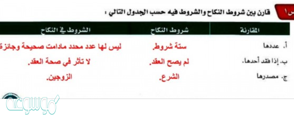 قارن بين شروط النكاح والشروط في النكاح عددها، النكاح هو عقد الزواج في الإسلام والذي شرعه من أجل الحفاظ على النسل والالتزام بالضوابط والشروط الإسلاميّة التي تم تحديدها والبعد عن المُحرمات التي يُمكن أن يقوم بها الإنسان في حياته، كذلك تعمل هذه على الشروط على تحديد بعض من الضوابط العامة التي ساهمت في الوصول إلى الأفق المعرفيّة العامة فيها، أيضًا تتطلب هذه مجموعة من الحقوق التي يجب على الزوج اتاحتها من أجل الحياة الزوجيّة السعيدة والتي تقوم على أفق التفاهم ما بين الزوجين بشكل عام، وسنوضح لكم حل السؤال الذي يُبين قارن بين شروط النكاح والشروط في النكاح عددها.