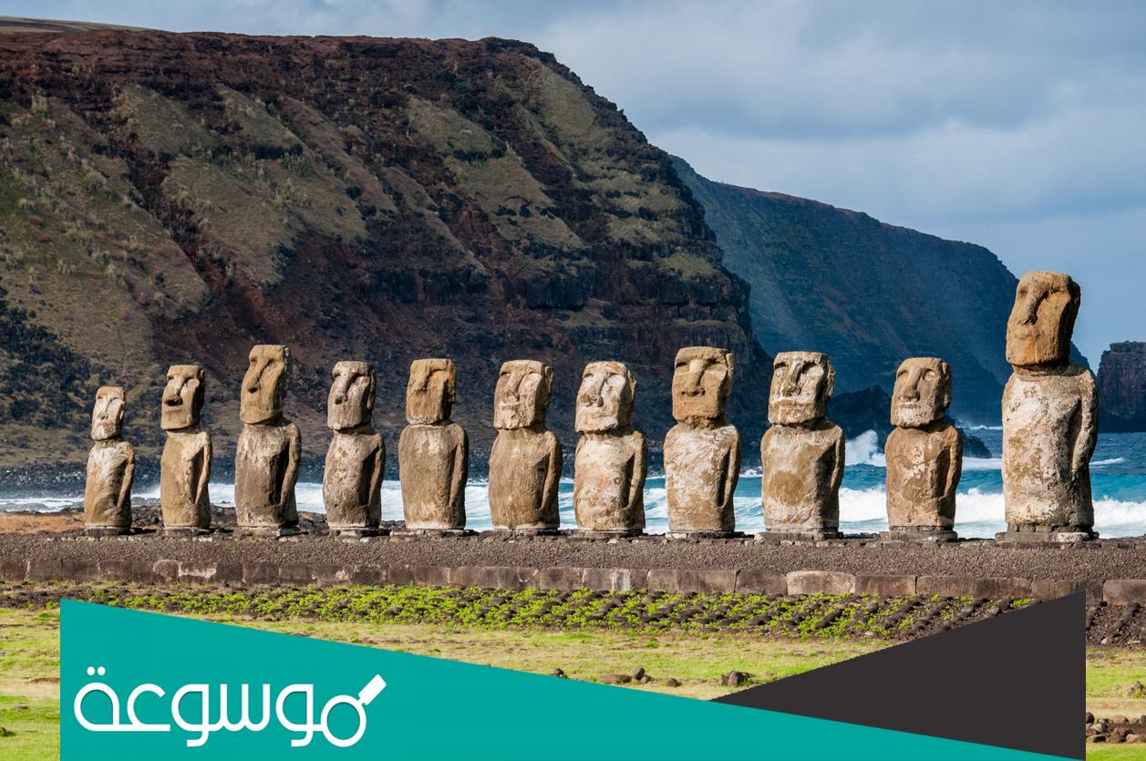 تغطي جزيرة إيستر ما يقرب من 64 ميلاً مربعاً في جنوب المحيط الهادئ ، وتقع على بعد حوالي 2300 ميلاً غرب ساحل تشيلي و 2500 ميلاً شرق تاهيتي. وصلوا في عام 1722 وضمتهم تشيلي في أواخر القرن التاسع عشر ويحافظون الآن على اقتصاد السياحة إلى حد كبير، أكثر ما يدعي شهرة جزيرة إيستر إثارة هو وجود ما يقرب من 900 شخصية حجرية عملاقة يعود تاريخها إلى قرون عديدة. تكشف التماثيل عن مبدعيها أنهم حرفيون ومهندسون ماهرون ومتميزون بين المنحوتات الحجرية الأخرى الموجودة في الثقافات البولينيزية. كان هناك الكثير من التكهنات حول الغرض الدقيق. بالنسبة للتماثيل ، والدور الذي لعبوه في الحضارة القديمة لجزيرة الفصح والطريقة التي ربما تم بناؤها بها ونقلها.