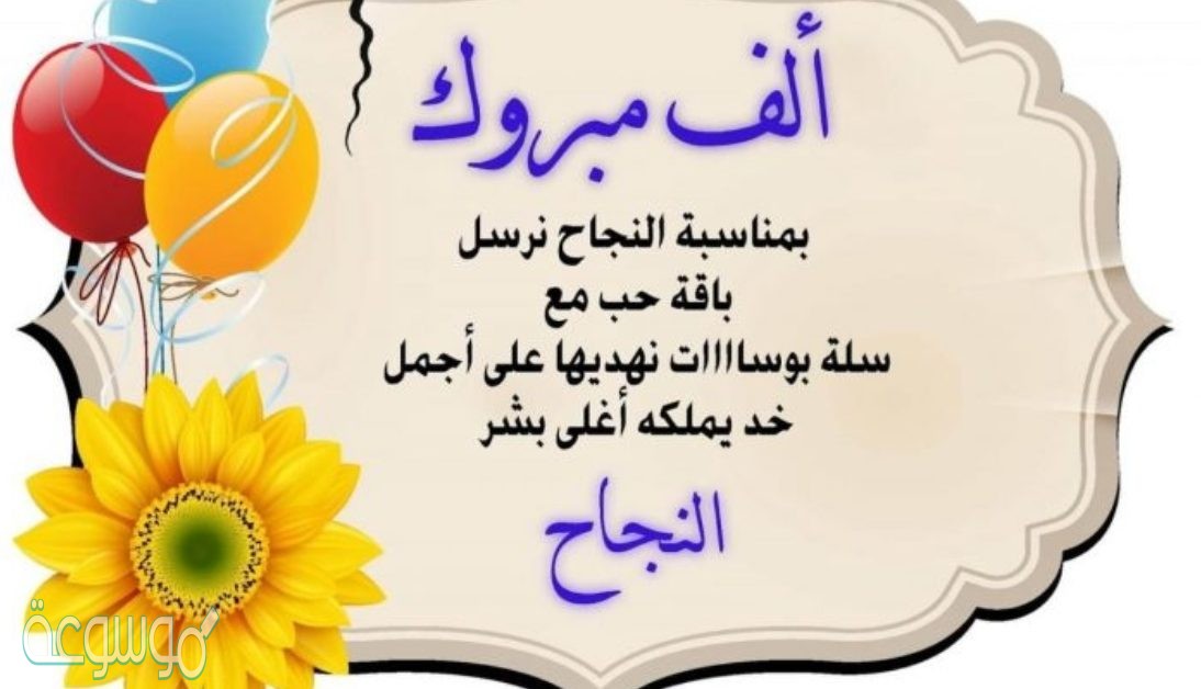 - بَعْد السّهَرُ وَالتّعَبُ الْمُتَوَاصِل خِلالَ فَتْرَةٍ الدِّرَاسَة، رَبِّي لَمْ يُضَيِّعْ لَك تَعِب وَرَزَقَك بِالنَّجَاح الَّذِي تتمناه … أَلْف مَبْرُوك النَّجَاح وَالتَّفَوُّق.