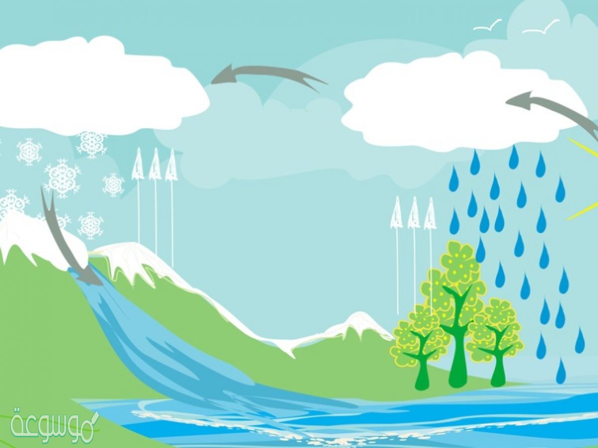- مرحلة التبخر، وفيها يتحول الماء إلى بخار يصعد في الجو بفعل الهواء إلى طبقات الجو العليا.