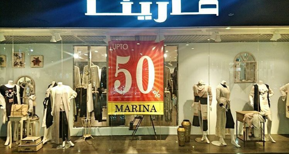 وهذه هي الفروع الستة في الأعلى الخاصة بمارينا الخاص ببيع الملابس النسائية وهذه الشركة تعد من الأشهر في المملكة العربية السعودية المختصة ببيع الملابس والأزياء العربية.