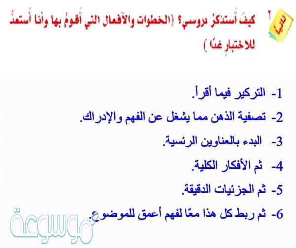 كيف استذكر دروسي الخطوات والافعال التي اقوم بها