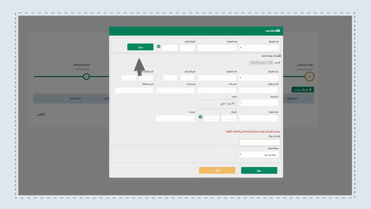- اضغط على ايقونة اضافة وكيل، واملأ البيانات الخاصة به