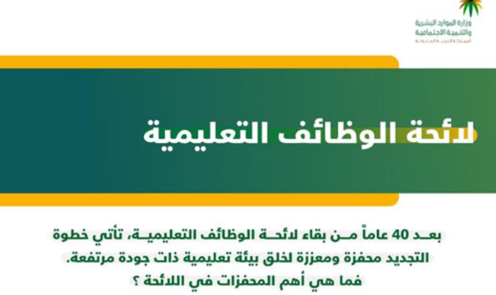جاء في اللائحة الجديدة أخبار مفرحة للموظفين في القطاع التعليمي ومنها أنه سوف يحصل كل موظف على الترقية الخاصة به دون رقم وظيفي شاغر، وقد وأضحت التعليم في المملكة في العربية السعودية بأنه سوف يتم تنفيذ هذه القرارات من يوم الإربعاء، حيث أن الوزارة تقوم بتزويد الموظفين بمزايا جديدة بناء على الجهود التي قدمها الموظفين في القطاع التعليمي، وأضافت للموظف مزايا جيدة تخص ترقيته ومزايا مادية تمكنه من الحصول على الامتيازات الجديدة في الوظائف التعليمية التي أصدرتها الوزارة، لرؤية اللائحة الجديدة التي أصدرتها الوزارة قم بالضغط هنا.