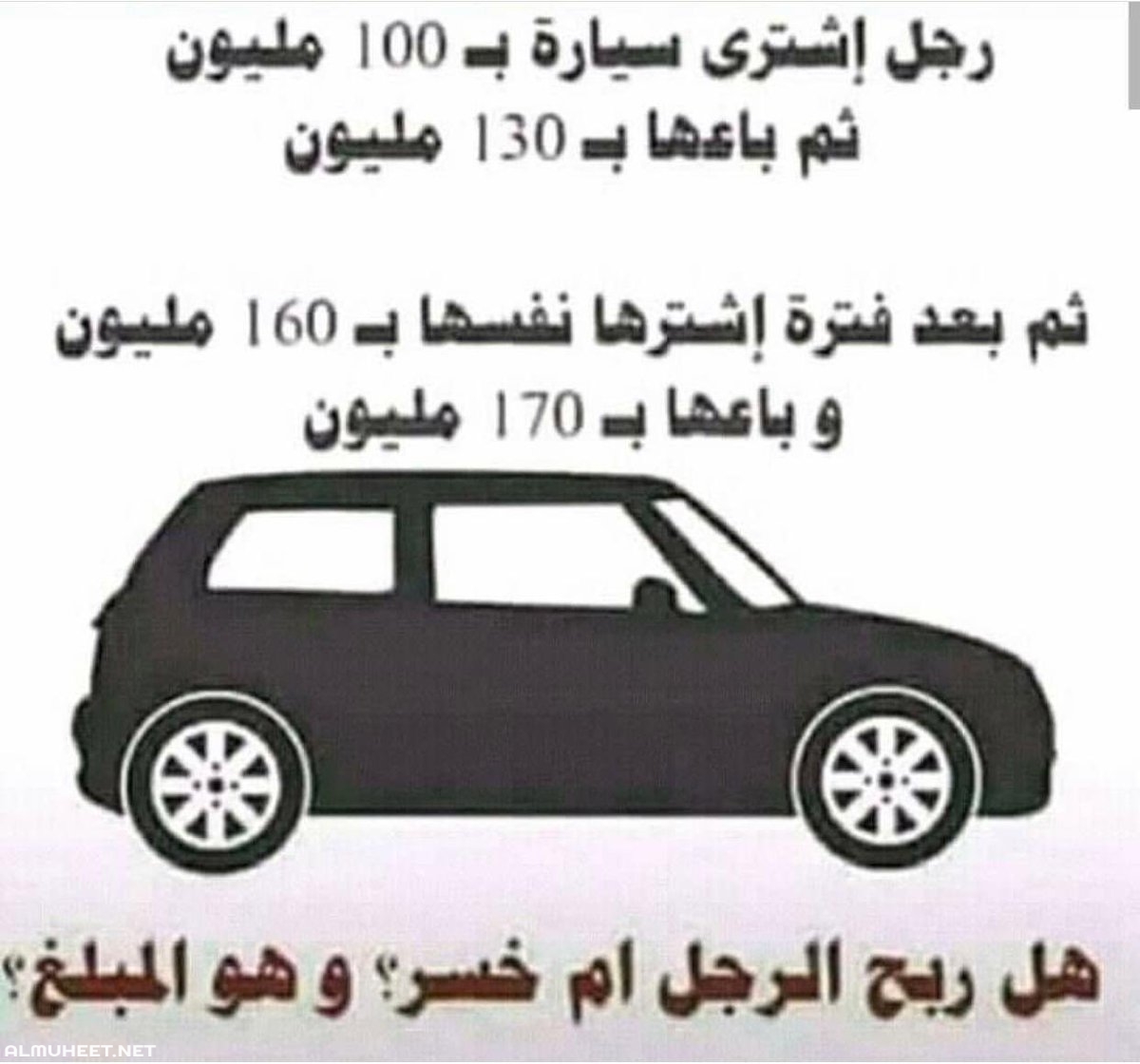 لغز رجل اشترى سيارة ب 100 مليون ثم باعها ب 130 ثم اشتراها ب 160 ثم باعها 170