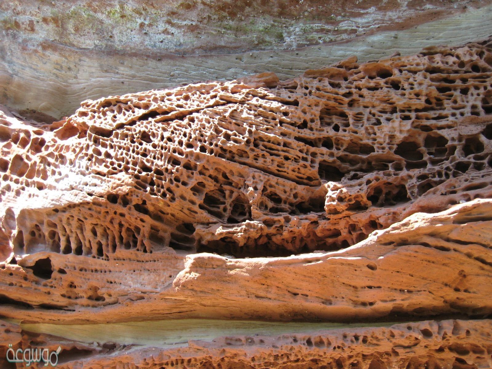 - الاكسجين: يحدث ذلك من خلال تفاعل الاكسجين مع المواد المعدنية، وهو ما يعرف بعملية الاكسدة، وإنتاج مواد معدنية جديدة اقل صلابة ومقاومة، مما يسهل عملية تفتيت الصخر وتآكله.