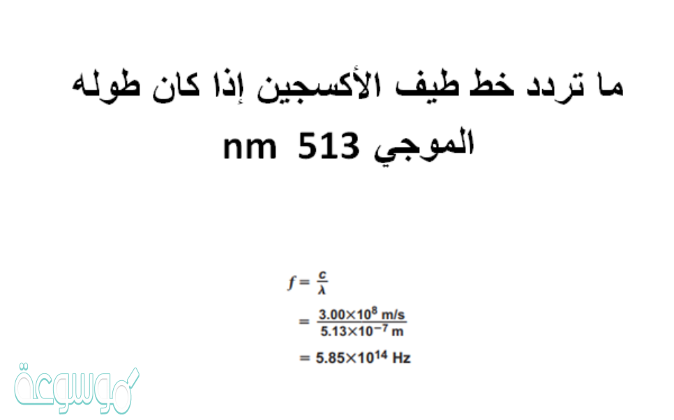 ما تردد خط طيف الأكسجين إذا كان طوله الموجي 513 nm