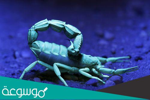 تنتمي العقارب إلى فئة العناكب ، والعقارب لها هيكل عظمي مدرع ، كماشة ، ولديها العديد من الإبر اللاذعة المؤلمة والسامة ، ولديها أيضًا العديد من البروتينات في هيكلها الخارجي ، وتتحول هذه البروتينات إلى ضوء نيون في درجات زرقاء ، وذلك عند تعرضها للأشعة فوق البنفسجية ؛