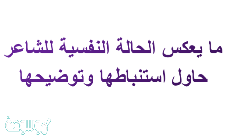 ما يعكس الحالة النفسية للشاعر حاول استنباطها وتوضيحها، التوضيح في بعض الأحيان من خلال التعرف على الأبيات الشعرية يجب على الطالب في التعرف على الحالة النفسية للشاعر من خلال كتاباته لأن الشاعر في هذه القصيدة يتحدث عنها الشاعر للوصول إلى الحل المقصود في السؤال الدراسي، فهذه المرحلة الدراسية تمثل الكثير للطالب الباحث عن الحل الصحيح الذي يمكنه في التوصل إلى المعنى المقصود من خلال تحليل أبيات الشعر لفهم ما يعكس الحالة النفسية للشاعر.