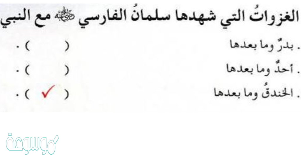 من الغزوات التي شهدها سلمان الفارسي غزوة بدر