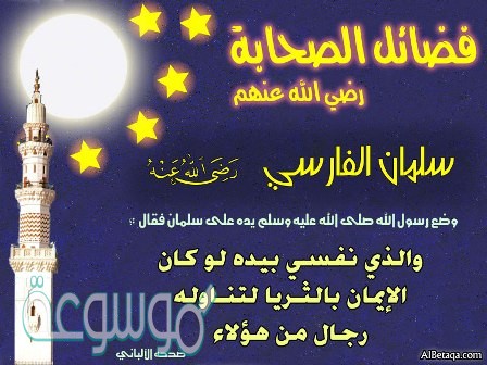 الكثير منا يريد معرفة من هو الصحابي سلمان الفارسي وهو صاحبي مولى للنبي محمد، وأحد رواة احاديث النبي الكريم(الحديث النبوي)، وهو أول الفرس إسلاماً؛ وأصله من بلاد فارس، فقام بترك أهله وبلده سعيًا وراء معرفة الدين الحق؛ فانتقل بين البلدان ليصحب الرجال الصالحين من القساوسة، إلى أن وصف له أحدهم ظهور نبي في بلاد العرب، ووصف له علامات ليتحقق منه. اتفق سلمان مع قوم من بني كلب لينقلوه إلى بلاد العرب، فغدروا به وباعوه إلى يهودي من وادي القرى، ثم اشتراه يهودي آخر من يثرب من بني قريظة، ورحل به إلى بلده، وعند هجرة النبي محمد إلى يثرب، سمع به سلمان، فقام مسرعا ليتحقق من العلامات، فأيقن أنه النبي الذي يبحث عنه. فأسلم، وأعانه النبي محمد وأصحابه على مُكاتبة مالكه، حتى أُعتق. بعد عتقه، شهد سلمان مع النبي محمد غزوة الخندق، وهو الذي أشار على النبي محمد بان يحفر الخندق لحماية المدينة من قريش وحلفائها، ثم شهد معه باقي المشاهد وبعد وفاة النبي محمد، شهد سلمان الفتح الإسلامي لفارس، وهو من تولى إمارة المدائن في عهد خلافة عمر بن الخطاب إلى أن توفي في خلافة عثمان بن عفان  بالمدائن سنة 33 هجري وقيل انه توفي سنة 36 هـ ، حي انه كانت لسلمان زوجة من قبيلة كندة، اسمها بُقيرة، وقيل أنه كان له بنت بأصبهان لها نسل وبنتان في مصر.