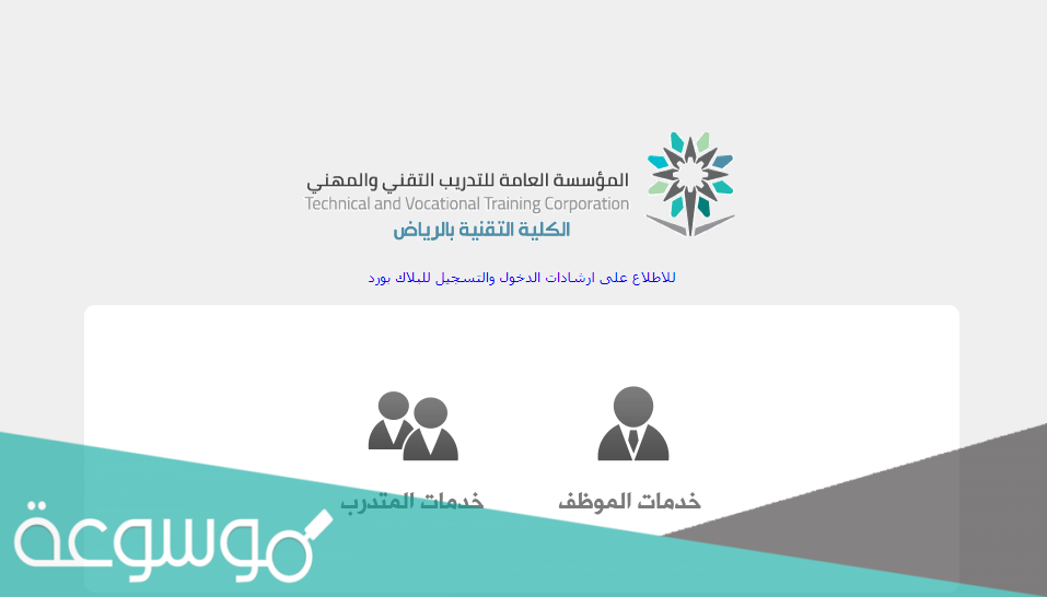 الموقع الإلكترونية للكلية التقنية التابعة للمؤسسة العامة للتدريب التقني والمهني الموجودة في مدينة الرياض تقوم على تزويد المستخدمين بخدمتهم من خلال الموقع الإلكتروني، تسمح الخدمة بتسهيل وصولهم للخدمات الإلكترونية حتى يصلوا للخدمات اللازمة من خلال الدخول للبوابة التي يمكنك من خلالها التسجيل في نظام البلاك بورد الخاص بها من خلال الاطلاع على إرشادات الدخول الرئيسية وهذا رابط مباشر لدخول بوابة الكلية التقنية في العاصمة الرياض من هنا.