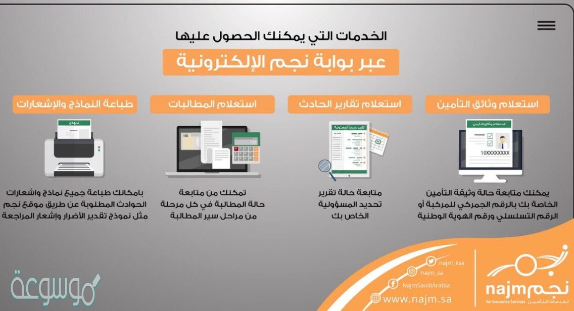 أصبح المواطنين يبحثون عن النموذج الذي يقوم به الفرد من أجل تعبئة النموذج حتى يتمكن الفرد من تسجيل النموذج الذي يمكنه من تسجيل الحادثة من خلال نجم، لذلك تجد المواطنين بحاجة لهذا النموذج الذي يرعي حاجة المواطن ويساعده في الحصول على الطريقة المثالية في تسجيل النموذج الذي يقدم له الخدمة التي تقوم على كيفية الحصول على البيانات التي تخص الفرد الذي يريد مطالبة التعويض من نجم عن الخسائر التي وقعت عليه.